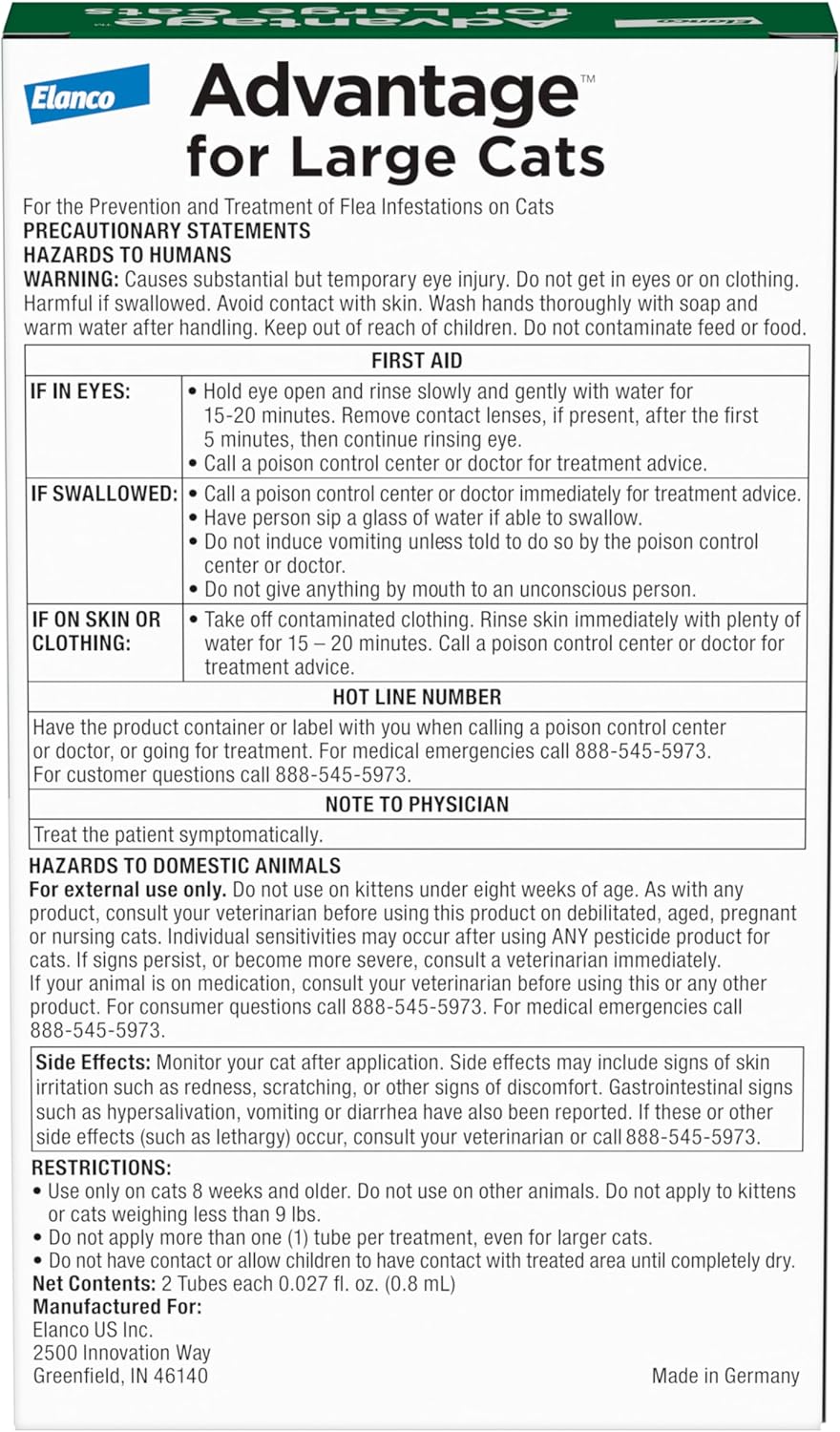 ADVANTAGE CAT offers dependable flea control for cats over 9 pounds, working quickly to eliminate fleas and provide relief. This treatment helps maintain your cat’s comfort and health by protecting against flea infestations for up to two months. Easy to use, it supports your effort to keep your pet happy and free from pests.