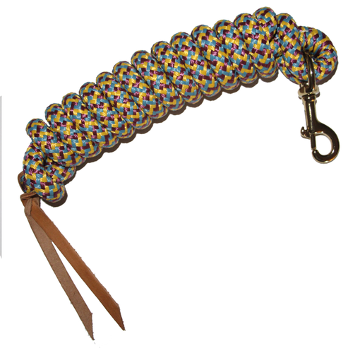 Cowboy Lead 5/8" x 9' w/ BP Bolt Snap, Leather Popper / Tri Color