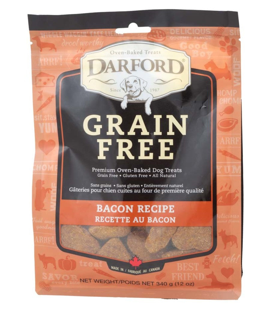 Grain free doesn't mean taste free! These tasty Darford Bacon Recipe treats are oven-baked and come in large heart shapes. Made with natural ingredients and packed with great flavor, your dog will beg for more!