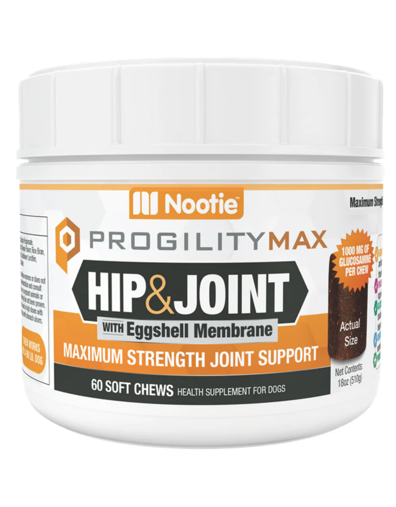 Nootie Progility Dog Soft Chews support your dog’s hip and joint health with a unique formula including eggshell membrane. These chewable supplements help maintain mobility and comfort, promoting active, happy pets. Convenient and tasty, they are ideal for daily use to keep your dog moving with ease.