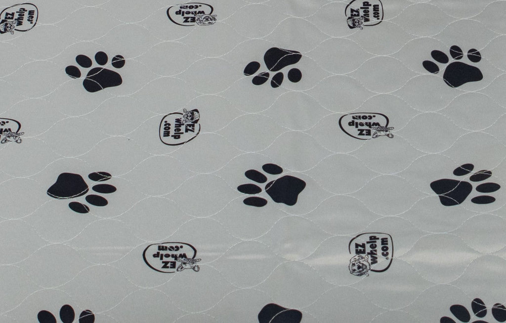 EZwhelp's gray paw print pads are absorbent, waterproof, and washable. A very soft brushed polyester surface is quilted to an internal soaker to maximize comfort and function. These pads have a velvet touch and are edge-serged with a safety stitch for longer life. They will give you and your furry friends plenty of protection and good looks to boot!