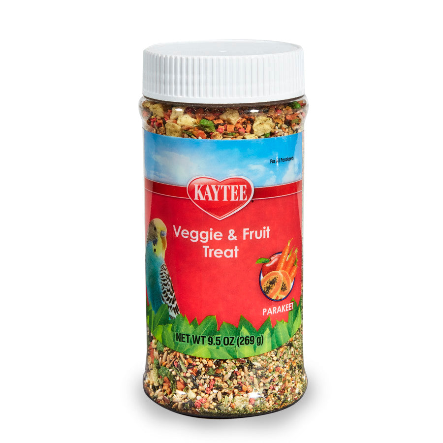 Kaytee Veggie & Fruit Treat for Parakeets are a fun way to add variety to your pet's diet. Fruit & Veggie Treat is a fortified blend of seeds and carefully selected fruits and vegetables.