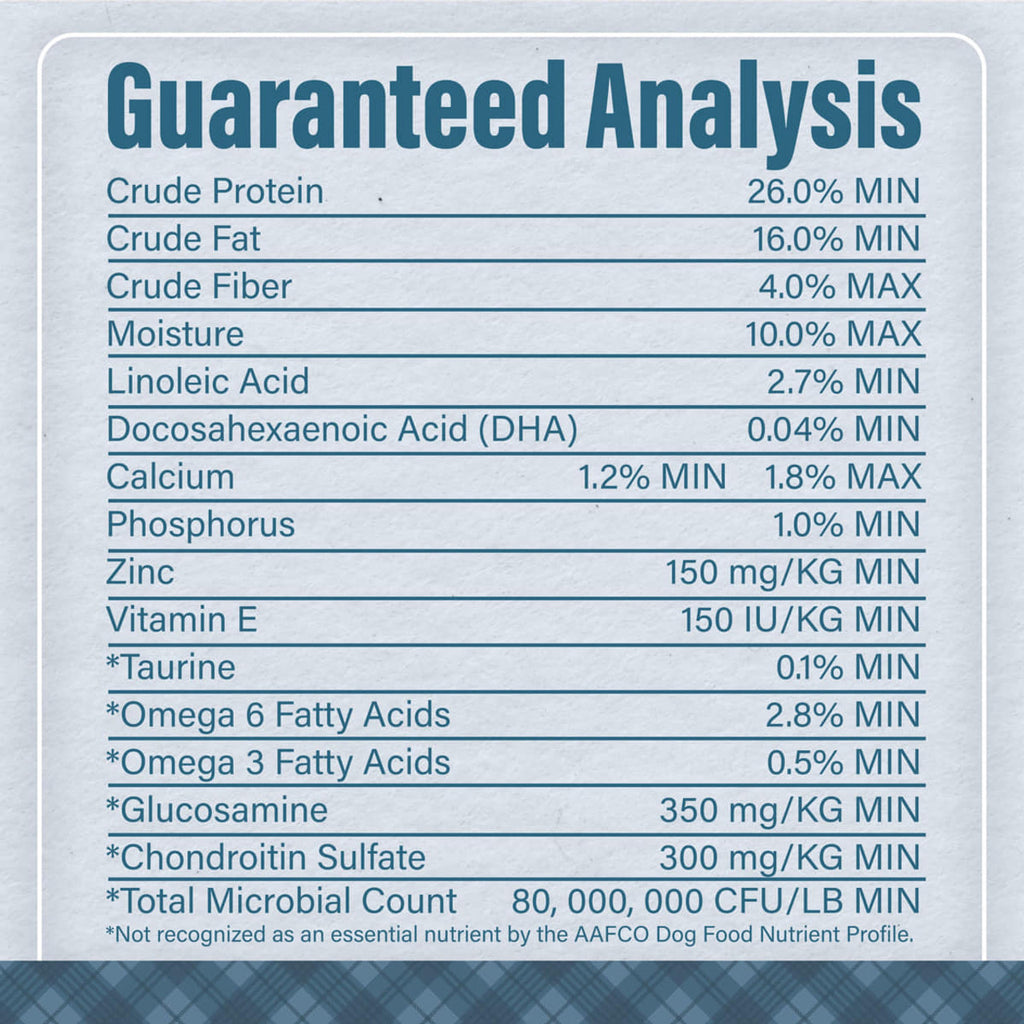 Loyall Life Chicken and Brown Rice Recipe Dry Dog Food provides super-premium nutrition for dogs of all life stages, making it a wholesome choice for families with dogs of different ages and sizes. With high-quality protein from tasty chicken as the #1 ingredient, plus real fruits and vegetables, this all life stages dog food is specifically designed to meet the needs of your lively canine companion. This formula includes TruMune, a research-proven postbiotic that helps boost immunity and vitality for a happy, healthy dog. Loyall Life has guaranteed levels of Omega 6 and Omega 3 fatty acids to support healthy skin and coat, while glucosamine and chondroitin sulfate support your loyal companion's joint health and mobility. This chicken dog food also contains taurine to support heart health, and prebiotics and probiotics to support healthy digestion. This chicken and rice dog food for all life stages is free from corn, wheat, soy, by-products and artificial colors, flavors and preservatives - a testament to Loyall Life's commitment to providing a high-quality meal made with super-premium ingredients. That way you can make the most of every moment together. That's the Loyall Life.