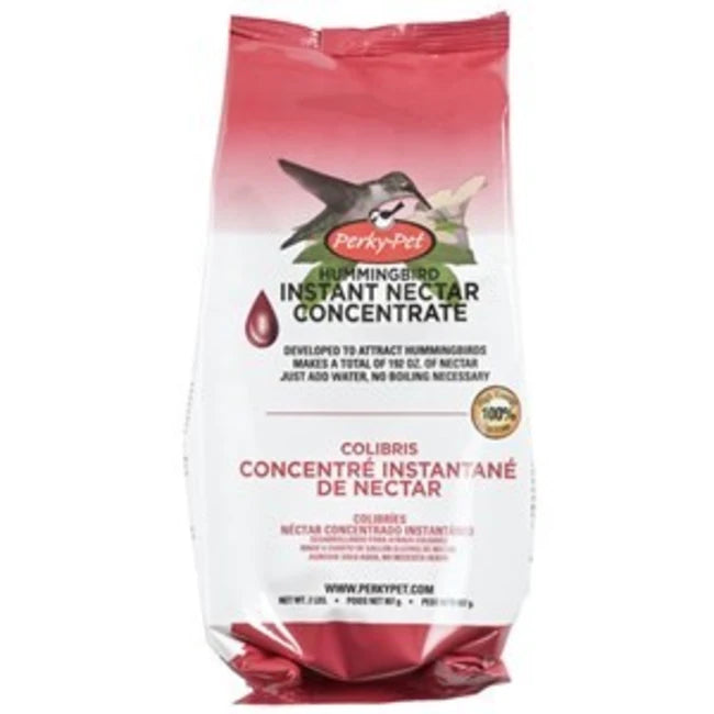 Perky-Pet 2 lb Red Instant Nectar provides the highest amount of energy to hummingbirds by using 100% sucrose. The 2 lb bag makes a total of 192 fl oz of hummingbird nectar, so there's sure to be enough to keep your hummingbirds coming back for more! This hummingbird nectar concentrate is so easy to use, simply stir in water, no boiling required. Mixing Instructions: Mix 4 Teaspoons of nectar concentrate for every 3 fl oz of water until you reach the desired amount of nectar solution.