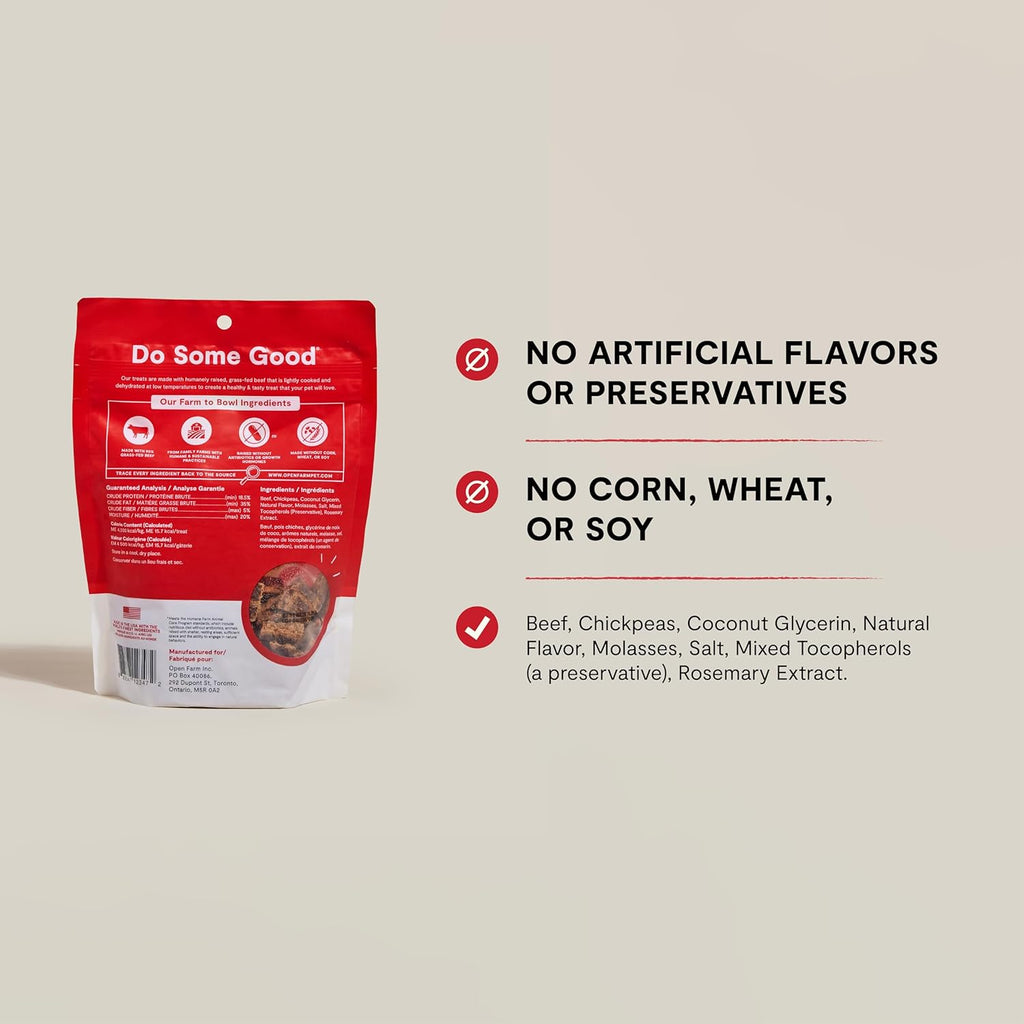Humanely raised beef, peas, molasses, sunflower lecithin, sea salt, mixed tocopherols (a natural preservative), rosemary extract.