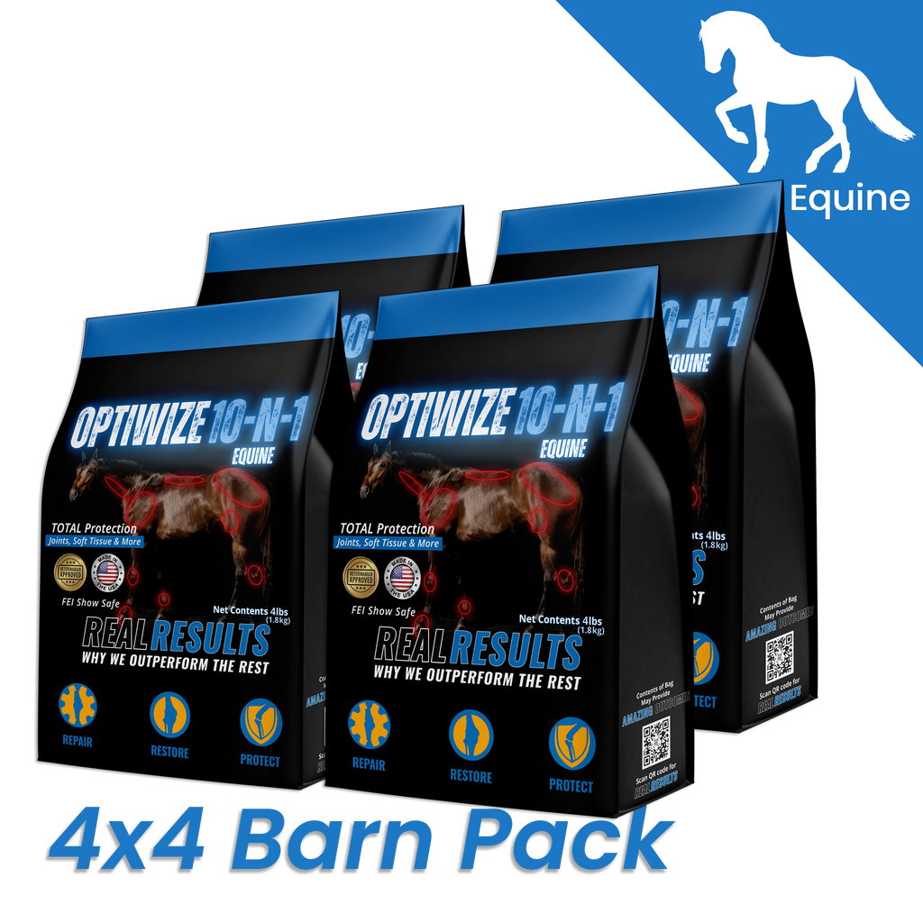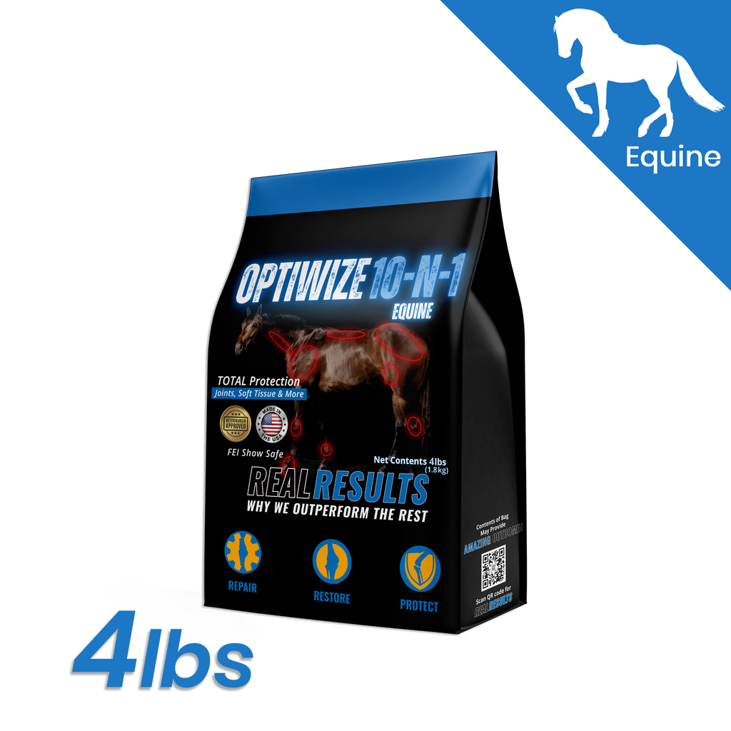 OptiWize is formulated with 10- natural ingredients proven to optimize, repair, and protect joint health inside and out. OptiWize is a horse joint supplement that is recommended for all phases of a horse's life.