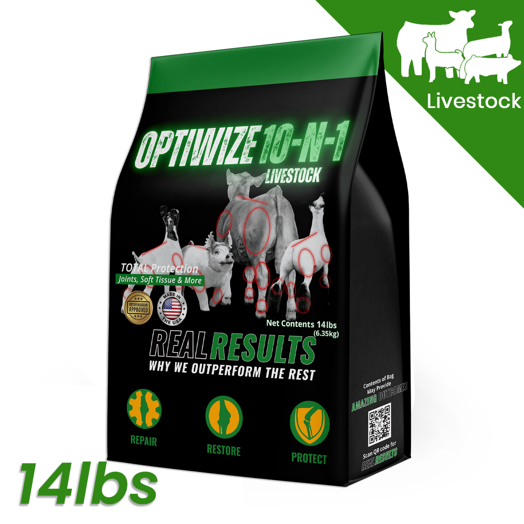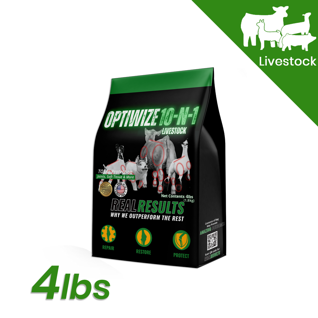 OptiWize is formulated with 10- natural ingredients proven to optimize, repair, and protect joint health inside and out. OptiWize is joint supplement for livestock that is recommended for all phases of a show stock's life.