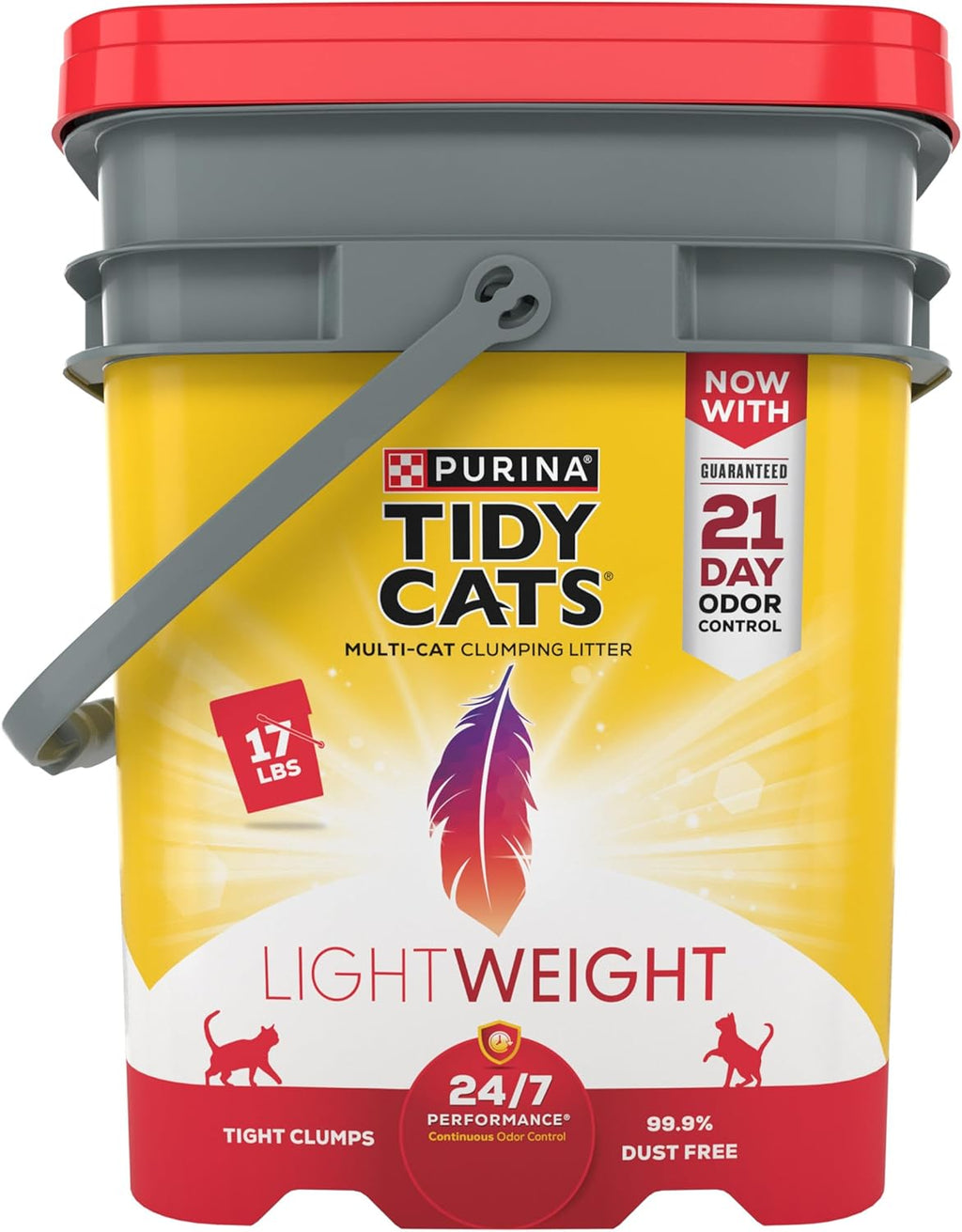 - One (1) 17 lb. Pail - Purina Tidy Cats Light Weight, Low Dust, Clumping Cat Litter 24/7 Performance Multi Cat Litter